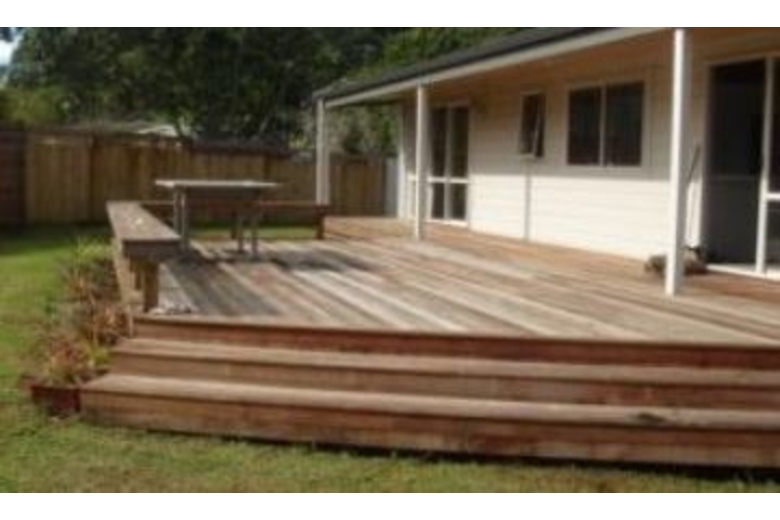 Carpeted floors, fabric curtains and venetians throughout, in the master bedroom there is a queen size bed, bedside tables, and the en suite has a large shower, vanity, wall heater, toilet and cork flooring. The second bedroom has a double bed, and the third bedroom has 2 single beds. The open plan lounge/dining room has two sets of leading out onto the deck, a 3 seater leather sofa, and a 2 seater leather sofa, coffee table, stereo, rugs, medium sized TV with DVD player. There is an oil column heater for winter stays. The dining area has a wooden/steel frame dining suite with six chairs.Surrounding Description