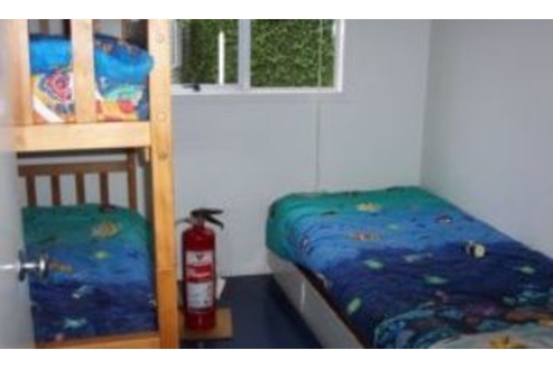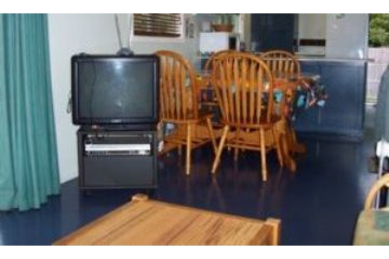 This holiday home features two bedrooms, one bath, the sleep-out comes with two bedrooms and one bath. Other features include a TV and video, a CD/radio/cassette stereo, an electric oven, a fridge/freezer, a microwave, small liquidizer for milkshakes, washing machine, outdoor furniture and a 3 burner gas BBQ. There is an expansive flat area of grass at the front of the section, ideal for children playing and parking including a trampoline, swings and a slide.Surrounding Description