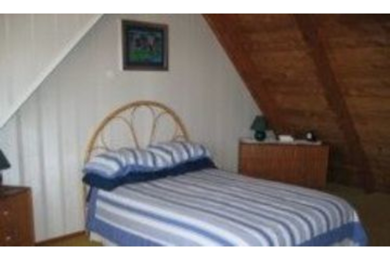 A 2 storied, 3-bedroom home sleeps 6 and two of the bedrooms are upstairs capturing the views; both are large, loft style rooms with angled ceilings and vertical blinds. The third bedroom is downstairs and has a ranchslider that leads to the deck. This is set up as a separate living area with TV (Play Station One installed), and a 3-seater couch that can fold out into an inner spring bed.Surrounding Description