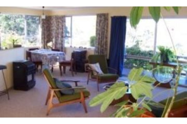 This holiday home features two bedrooms, one bath, an older-style TV for which reception is often variable, an older LP/radio/tape stereo but unfortunately no DVD or CD Player, fridge/freezer, a good-size cupboard pantry, an extractor fan and lots of drawer & cupboard space for crockery, cutlery, pots, pans and glassware. There is an electric jug, sandwich maker, toaster, teapot and a medium size coffee plunger. (Note there is no kitchen whiz/juicer or microwave). Guests have the use of one of the garages. This has an opening height of 2.6M so is only suitable for cars. Alternative outside parking is available for bigger vehicles or boats. (Note: the driveway and turning area at the top requires a reasonable amount of skill and care).Surrounding Description