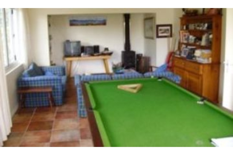 A beachfront property with a boat mooring in front, 3 bedrooms, 2 bathrooms, spacious living areas, full front decking, sauna, spa pool, quality furnishings, modern appliances and a one bedroom, one bathroom self contained flat with a pool table.