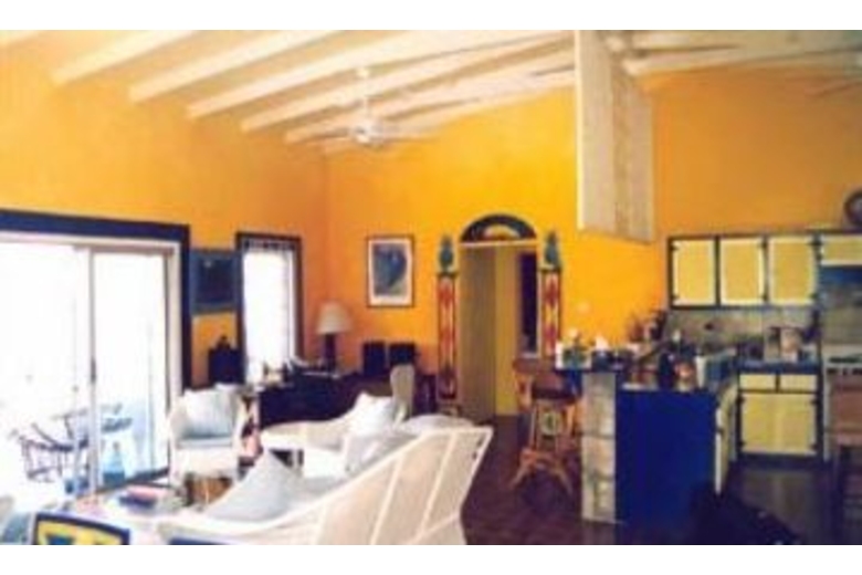 This villa features a master bedroom with a king-sized four-poster bed, and sliding glass doors opening directly to the verandah. The second bedroom also has a king-sized bed. The third bedroom is located on the lower level and features twin beds, a private bath, and a private entrance. Upstairs, the large great room contains the living room, dining room, and kitchen, and is furnished in white wicker. The kitchen is well-equipped and includes nice appliances. A full bath opens off of the great room. From the great room, sliding glass doors open to the verandah and its panoramic view.Surrounding Description