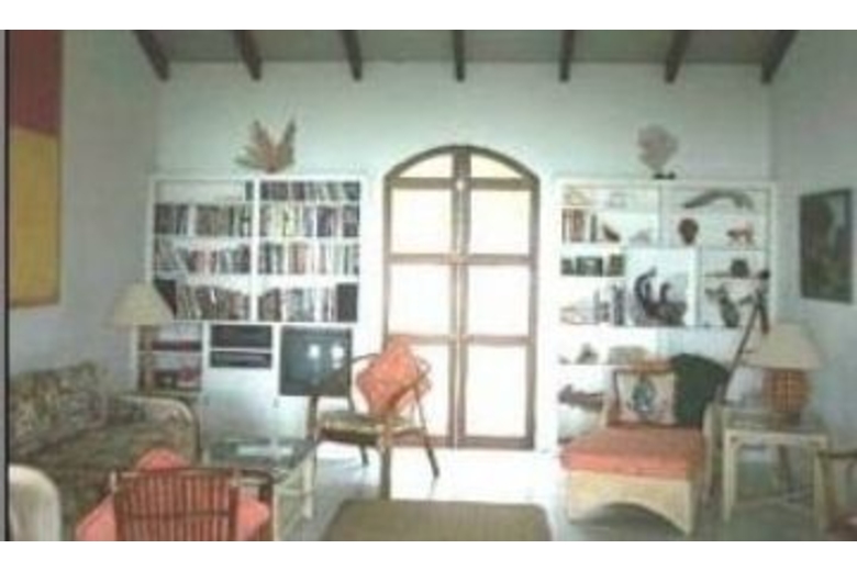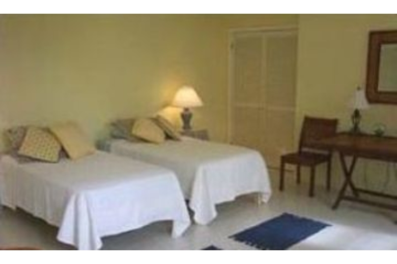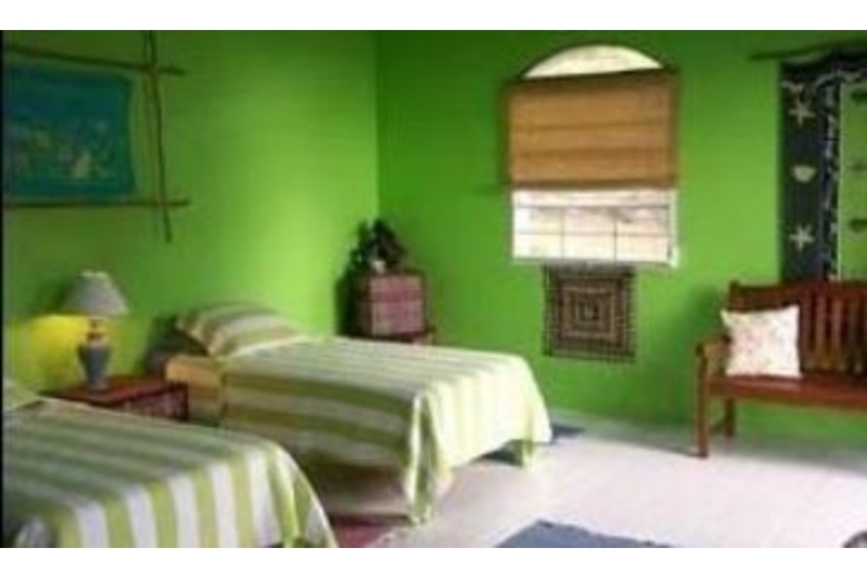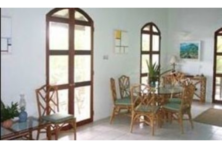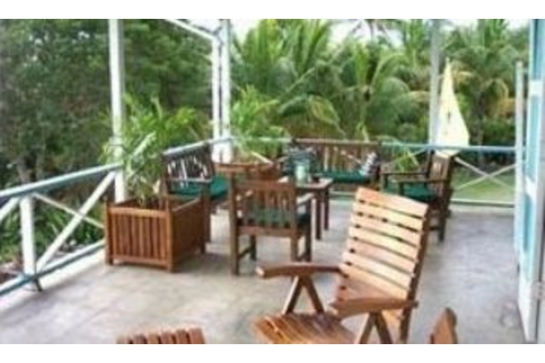 The very private "Frye House" has a large rattan filled living room/dining room, kitchen/bar which all open onto a spectacular veranda for outside dining, relaxing and taking in the views of Montserrat, Antigua and the Atlantic Ocean. It is just a few steps down to the 20' x 30' pool. The Veranda, which surrounds two sides of the house with a 180 degree view of Mt. Nevis and the ocean. The veranda always has a wonderful island breeze. There are three sitting areas and an outdoor mahogany dining table, which is suitable for eight people.Surrounding Description