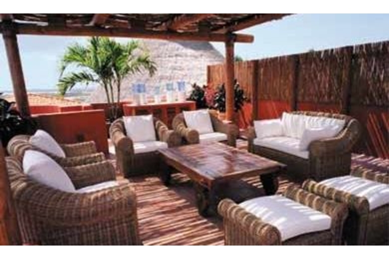 Preceded by a sculpted volcanic stone fountain, the villa has an open living room under a gigantic palapa (thatch roof). A spectacular pergola links the Palapa to an inside living room surrounded by the pool. All of the interiors feature high ceilings and distinctive furnishings. Bajacu offers a formal dining room that features a gleaming wooden table. An open air, furnished veranda provides an additional area for dining al fresco. Each bedroom offers a private terrace offering stunning views of the sea. The stunning and dramatic Infinity pools provide an idyllic setting to savor the peace and tranquility at Bajacu. Both pools may be heated, if desired. A Sunset Terrace is comfortably furnished with overstuffed furnishings set on cool salmon colored tiled floors. The views from this terrace are truly mesmerizing. A natural stone path winds down through lush vegetation to a platform with ladder where swimming may be enjoyed when seas/weather conditions permit. The villa is completely staffed with a butler, cook, 1-3 maids (function of occupancy) and a gardener. Two of the staff members live on the property.Surrounding Description