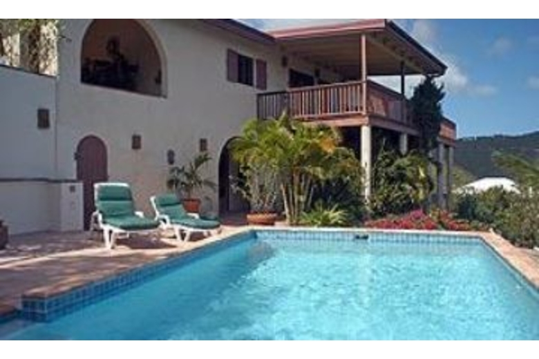 A private oasis from the “real” world, Dos Palmas is a luxurious spanish style all-masonry villa in a rural tropical setting on a mountain ridge high above Coral Bay, St John, USVI. The British Virgin Islands and the Sir Francis Drake Channel make up the rest of the dramatic setting. View stunning tropical sunrises every morning from the main deck.