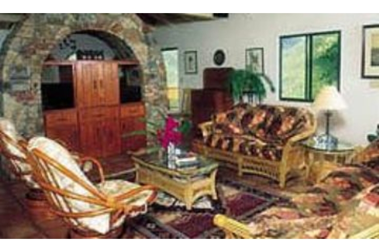 A private pool is an island necessity for morning dips, afternoon relaxing, and romantic evenings. The spacious great room is dominated by a massive stone entertainment center. The formal dining room is a wonderful setting for those special island meals; or dine outside on the sweeping, well-lit main deck. A large, fully equipped kitchen, formal dining room, and a comfortable living room are upstairs, surrounded by a huge wraparound deck commanding both ocean and mountain vistas. Italian tile and fine teak furnishings are found throughout the house. Four wonderful bedrooms, all with spacious baths and private entrances. The master bedroom also has a private rear patio, leading to a large tropical garden in the backyard.Surrounding Description