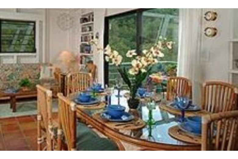 The kitchen is modern and well equipped. There is also an outdoor gas grill for tasty barbecuing. Banana Cabana has two separate ‘pods’ or separate buildings, each with a bedroom and bath. This type of house design ensures complete privacy, beautiful views and maximum exposure to the easterly trade winds from either pod. Not far from the villa, the pool has a covered deck area with counter space to prepare food or drinks. The covered portion of the pool deck also provides nice shade where you can relax out of the sun.Surrounding Description