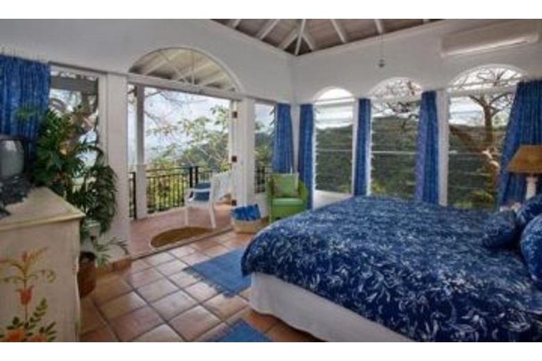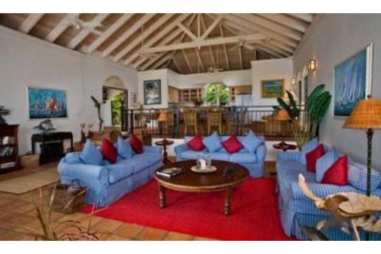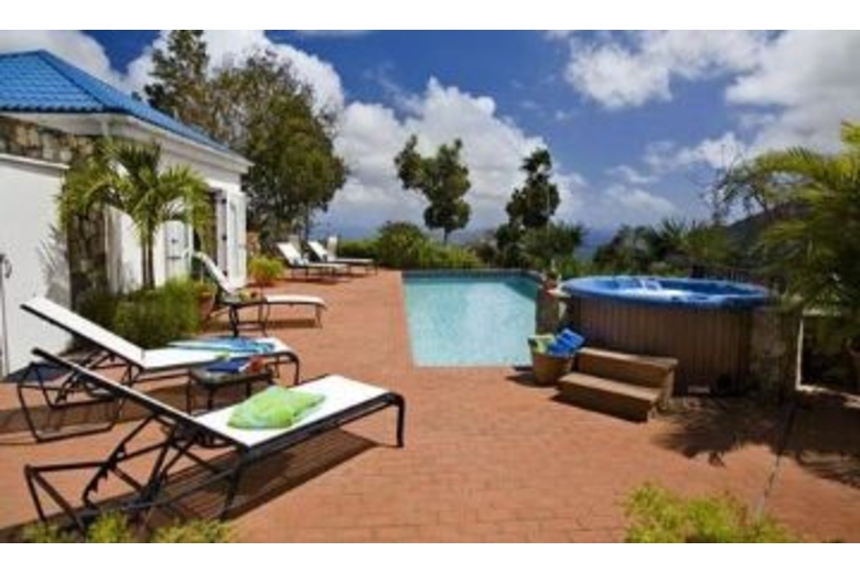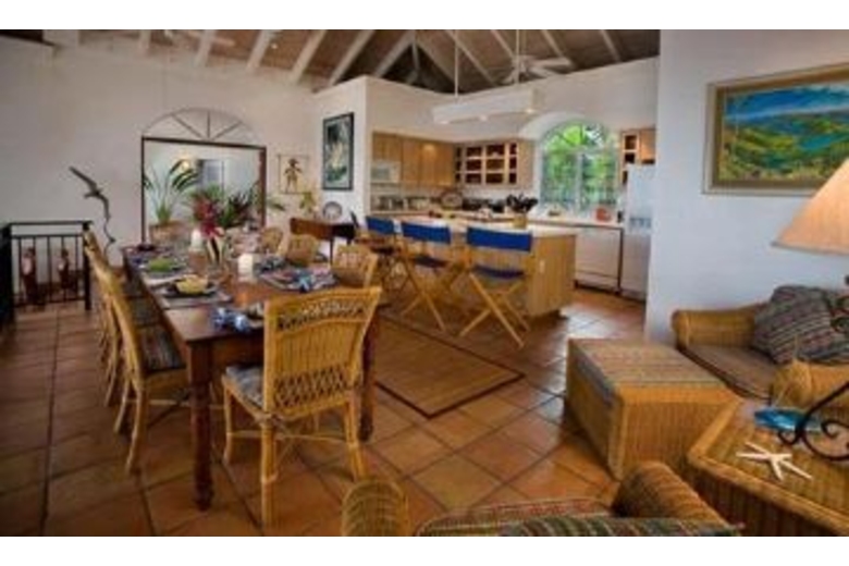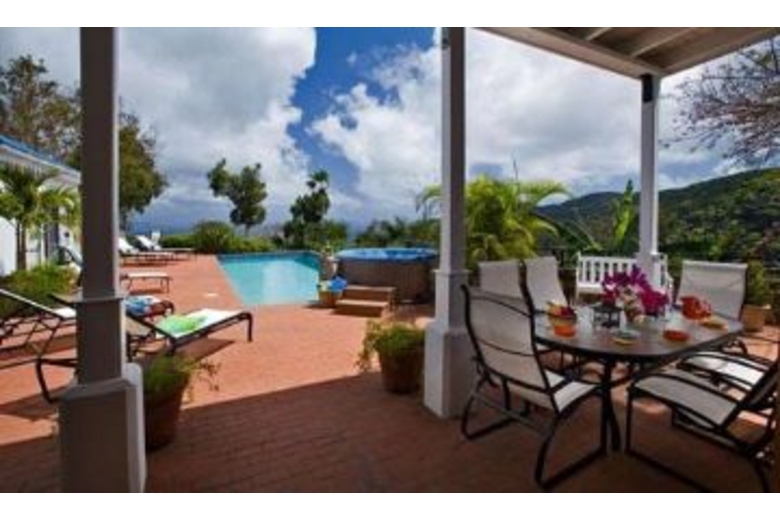 Lounge on the large bricked deck, swim in the pool (32'X12') 3 ft shallow 5 ft deep end, or relax in the hot tub, in total privacy. The view will take your breath away!! For toddler safety, a nylon mesh barrier may be installed around the pool, by advance request. Mystic Ridge is 4200 square feet of luxurious living. The villa includes 4 bedroom 4 1/2 baths, an expansive great room (26'X42'), ideal for entertaining, dining and casual living. The split level great room includes a fully equipped gourmet kitchen with countertop seating, a formal dining area and a large living space with a complete entertainment center including tv, vcr, dvd, and cable tv. Tastefully decorated in bright Caribbean colors with casual comfortable furnishings.The outside covered porch has plenty of shaded space for lounging by the pool after a long day at the beach or enjoying a home cooked meal on the large dining table. The table has seating for six with two additional swivel rocker chairs that can be added to seat eight guests. Gaze out to the unspoiled hillside of the National Park while bathing in your indoor/outdoor shower. Double sinks and vaulted ceilings give you a large sense of space. In addition there is a large closet with safe for all your valuables.Surrounding Description