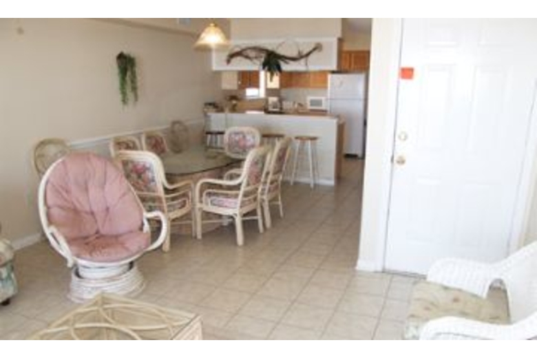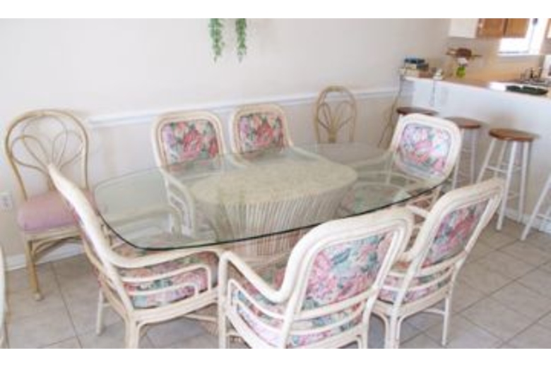 The spacious kitchen features great cabinetry, a dishwasher, and a full size refrigerator. The dining table is large and boasts a glass top and there are comfortable chairs for you to enjoy along with additional seating at the kitchen bar. The living area features a unique coffee table, nice sofa and access to one of the balconies. The first bedroom offers a full bed and a daybed. This room offers access to a balcony, a TV and great bedding. The master suite features a queen bed with beautiful bedding, access to a large balcony and a TV. This room also features a private bathroom. The next bedroom is decorated with bright colors and offers two twin beds. The last bedroom offers a queen bed and a twin bed. This room offers cute matching bedding. Enjoy a full size washer and dryer during your stay at this great duplex.Surrounding Description
