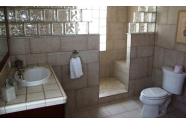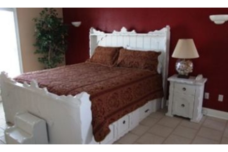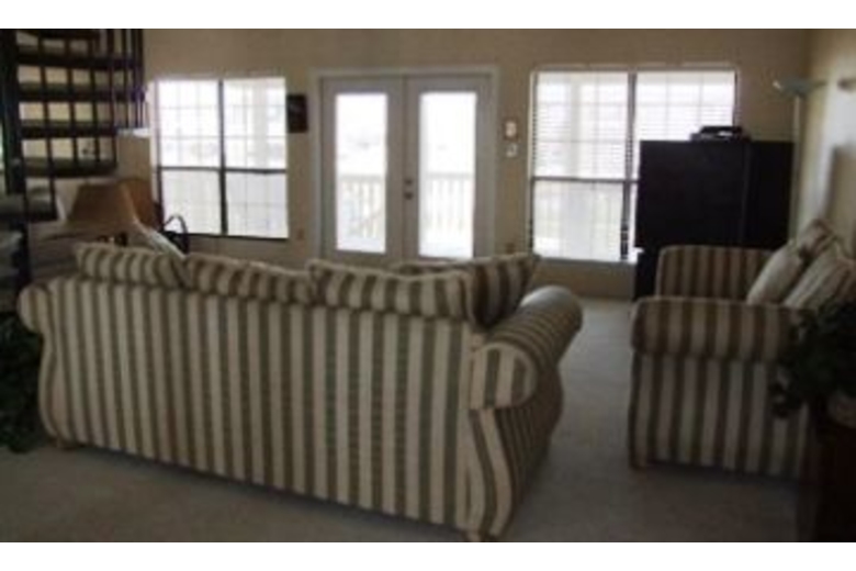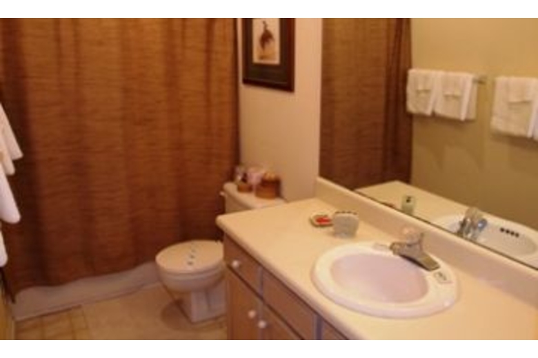 This larger home is perfect for a group of up to ten people. There are four bedrooms and two bathrooms and it is pet friendly. The master bedroom has a large king size bed, beautiful white furnishings and a large walk in closet. The master bath has a beautiful stone shower and tile throughout. The second and third bedroom have queen size beds and there is a loft area with two sets of twin bunks, perfect for the kids. Additionally there are three televisions and three DVD players.Surrounding Description