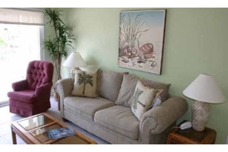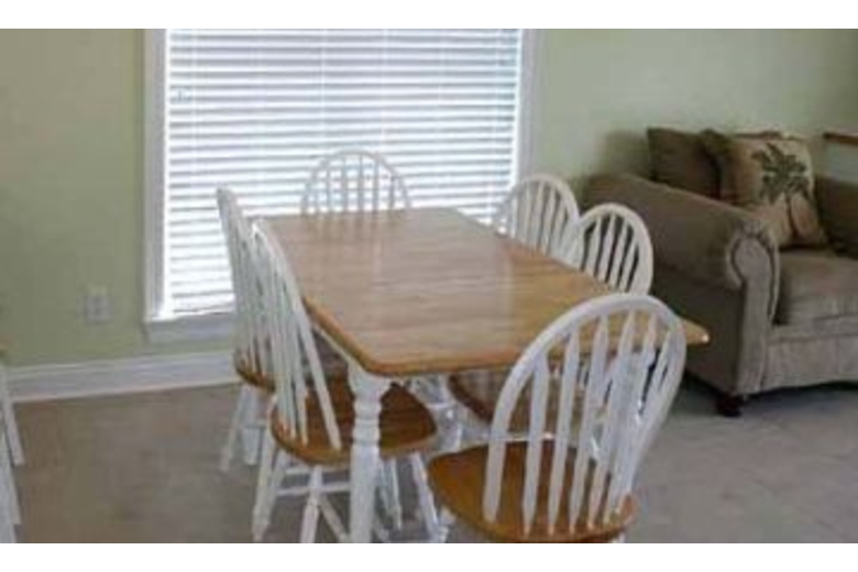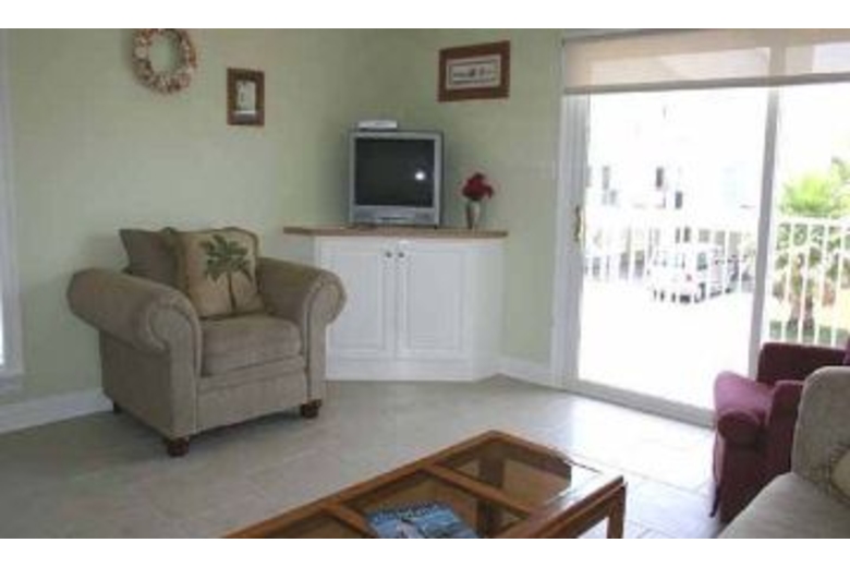 Up to ten people can be accommodated with three bedrooms and three bathrooms. The master bedroom has a queen sized bed and television. The guest bedroom is also furnished with a queen sized bed. The third bedroom is great for the kids with two twin sized beds. A den upstairs is equipped with a TV and DVD player. The kitchen has an open layout and is fully equipped with all necessary appliances, perfect for preparing a home made meal. The dining table has room for six people and more seating is available at the kitchen counter with four bar stools. The living room is nicely decorated and furnished also containing a TV and DVD player. More sleeping space is provided with two queen sized sofa sleepers.Surrounding Description