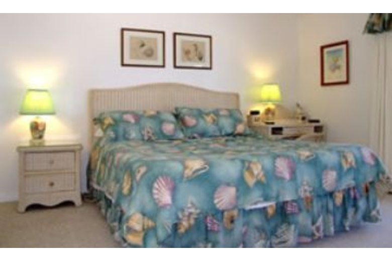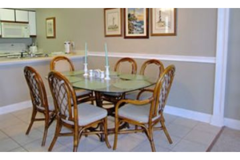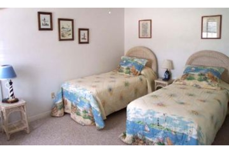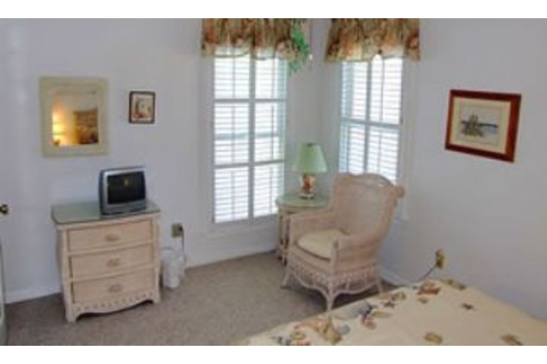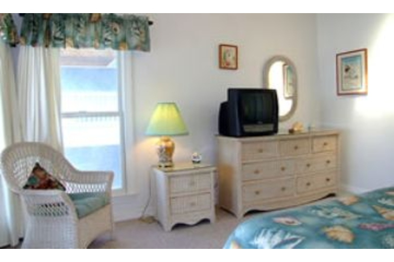 With large windows, the spacious living area offers unique furnishings including a great entertainment area. The dining area offers tile flooring and a large glass top table. The kitchen offers a microwave and a coffee maker and provides a great place to prepare a delicious meal. On the second floor, enjoy the master bedroom. This room boasts a king bed with beach bedding and a great window. There is also a large dresser and a TV. Also on the second floor, the next bedroom features a queen bed with an ornate headboard. This room also offers a TV and features a nice chair. The third bedroom is located on the first floor and includes two twin beds.Surrounding Description