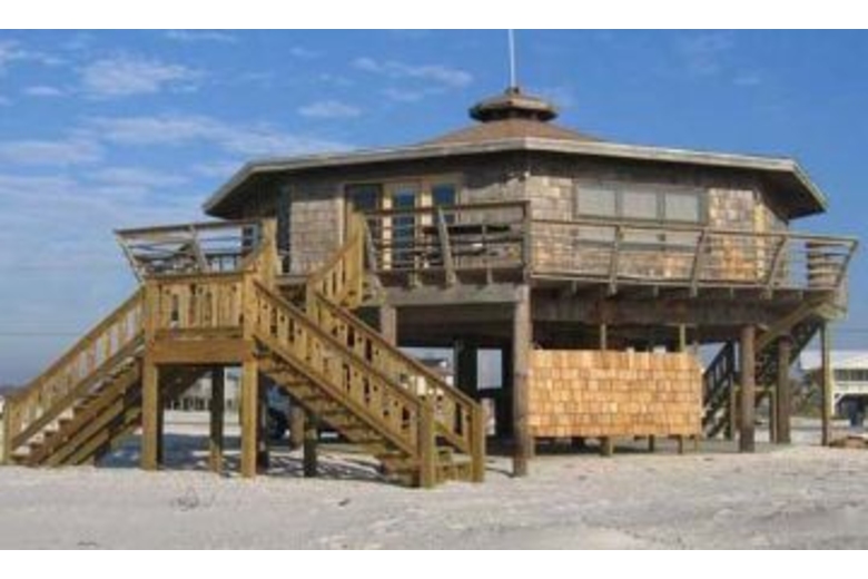Choose this gulf front home with an octagon shape and wraparound deck. With three bedrooms and two baths, eight people will be comfortable here. Come and stay in this unique Gulf Shores home for your next vacation and enjoy all Alabama has to offer.