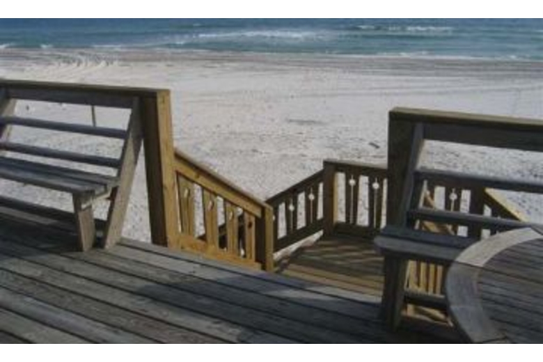 Walk out the door and be on the beach! The living room has comfortable furnishings, television, and DVD player. In the dining area, there is a large table that can seat six people. The kitchen is nicely equipped so you can make a delicious meal and never leave the beach! The master bedroom has a queen size bed. The second bedroom has a full bed while the third bedroom has two twin size beds. If needed, there is a nursery with a crib.Surrounding Description