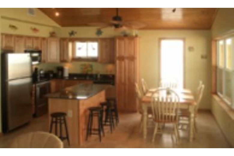 With a spacious, open floor plan and tasteful decor, this home is very pleasant. The living room has nice, neutral color furnishings as well as a television with DVD player. The kitchen is modern and is fully equipped with an island, stainless steel appliances, and granite countertops. An added feature of this home is the wet bar with an ice machine. Enjoy the view from the dining area or from the large deck as you are eating a delicious meal. The bedding includes three king size beds, four twin size beds, and a sofa sleeper. All of the bedrooms have a ceiling fans and television with DVD player. There is also a washer and dryer for added convenience.Surrounding Description