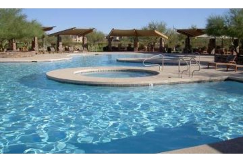 You have access to two large resort style pools, lighted tennis courts, a state of the art gym, volleyball and basketball courts, rock climbing wall for the kids and a large clubhouse. Inside the home you have a 42” plasma screen TV with DVD, surround sound and wireless Hi-Speed Internet. The front porch is adjacent to a community-walking path and has views of a dry wash. The Aviano Club house is across the street, just a short walk from the home. If you have kids there is a shaded playground ten giant steps from your front door.Surrounding Description