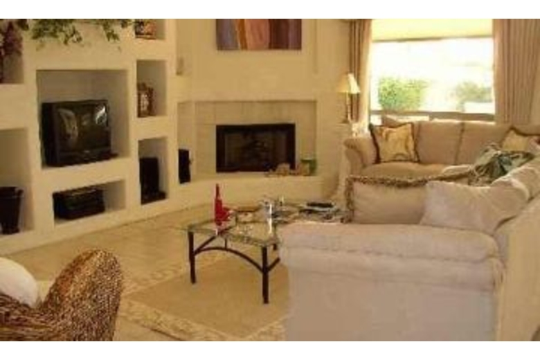 Wonderful three bedroom two bath private home with heated pool and jacuzzi. Built in BBQ, outdoor fireplace, indoor fireplace,two car garage. Living room has a 32" flat screen TV. Stereo speakers on the patio.Surrounding Description