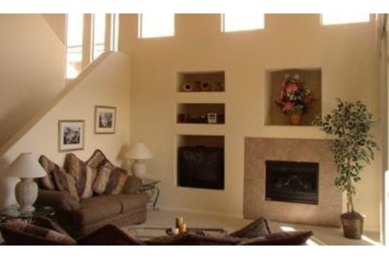 This townhome has a two car garage. Vaulted ceilings. Den has a desk with a printer, scanner, fax machine. Master bedroom has a king bed. Master bath has a roman tub and a separate shower. Second bedroom has queen size bed and a full bath. Nicely furnished.Surrounding Description