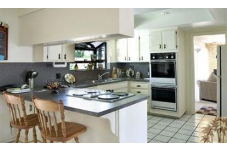 Gourmet kitchen with designer corian counter tops/backsplash is open to bright morning room. Garden window, 3-compartment stainless steel sink, double ovens, Jenn-Air electric cooktop and soffit lighting are just a few of the upgrades in this kitchen. Two of the three bedrooms have private patios, all have fans. The spacious family room is complete with a brick fireplace, wetbar, pass through window to patio, and convenient powder room. Separate laundry room with sink. Extra long two car garage with workbench. Central vacuum system. Wonderful private rear yard with some mountain views, covered patios, recently resurfaced pool/spa, pool heater, fruit trees and added lighting finish this wonderful vacation home!!Surrounding Description