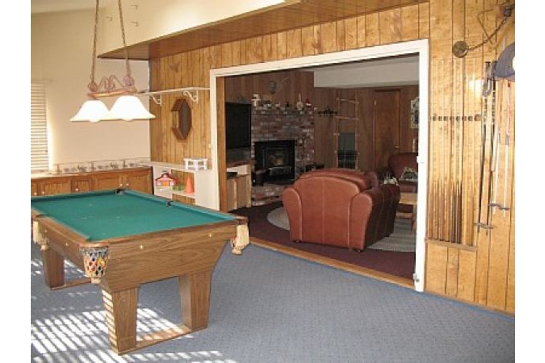 Offering views of the lake and the scenic surroundings, our Big Bear Lake vacation rental home is an ideal retreat for a splendid and romantic holiday with your family or friends. Spacious enough to accommodate up to 12 guests, this 3 bedroom home rental in Big Bear Lake includes 2 king size beds, a double bed, three twin beds, a crib and 2 sofa sleepers. There is a fully equipped kitchen with all modern amenities including a coffeemaker, a dish washer, utensils, a oven, and a refrigerator. There is a dining table with hand carved seats where you can enjoy family dinners. The bathrooms are fitted with modern amenities including shower, hair dryer, and bath tubs. There is a built in bar where you can host a wonderful gathering and entertain your group. We have provided big screen TVs, flat screen TVs, cable TV, DVD player, satellite TV and VCR's in our child friendly vacation rental in Big Bear Lake, CA. We also have an FREE WiFi and unlimited long distance. There are fireplaces to snuggle up to with your favored brews and beverages. Our game room has a pool table, foosball table and Air Hockey table. There is a private outdoor hot tub where you can relax. You will find the early morning lake view from the balcony just spectacular. Your beloved pets are more than welcome at this Big Bear Lake pet friendly home. By staying in our Big Bear Lake house rental you can indulge in breath taking activities including skiing, wind surfing, swimming, and horse back riding. This Big Bear Lake vacation home is just 1 mile away from Snow Summit Mountain, 1.5 Miles away from Bear Mountain and 1 mile away from the Village Center of Big Bear Lake.