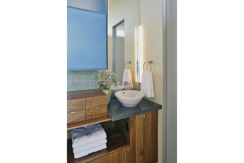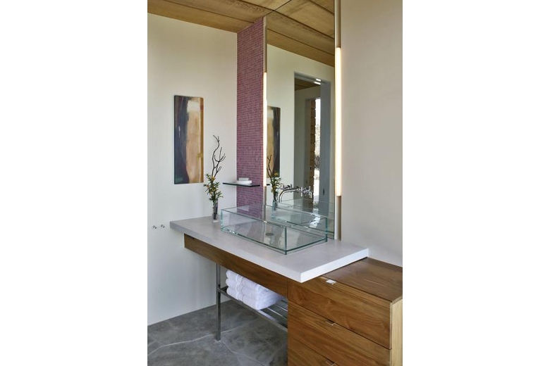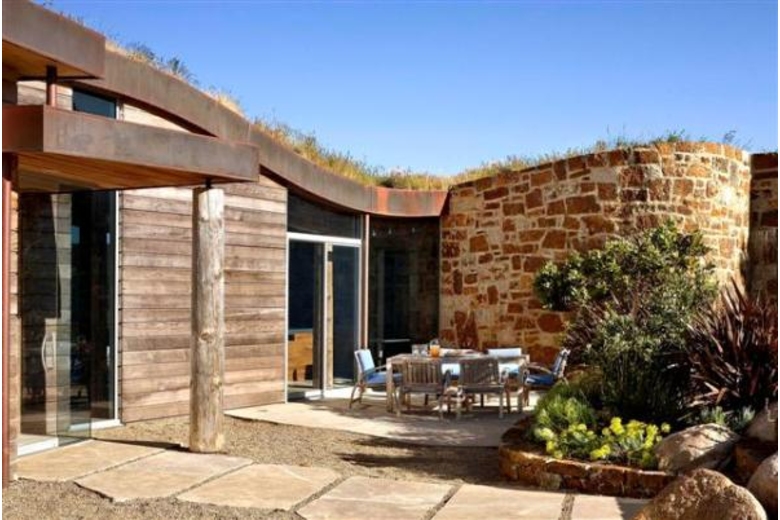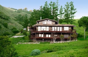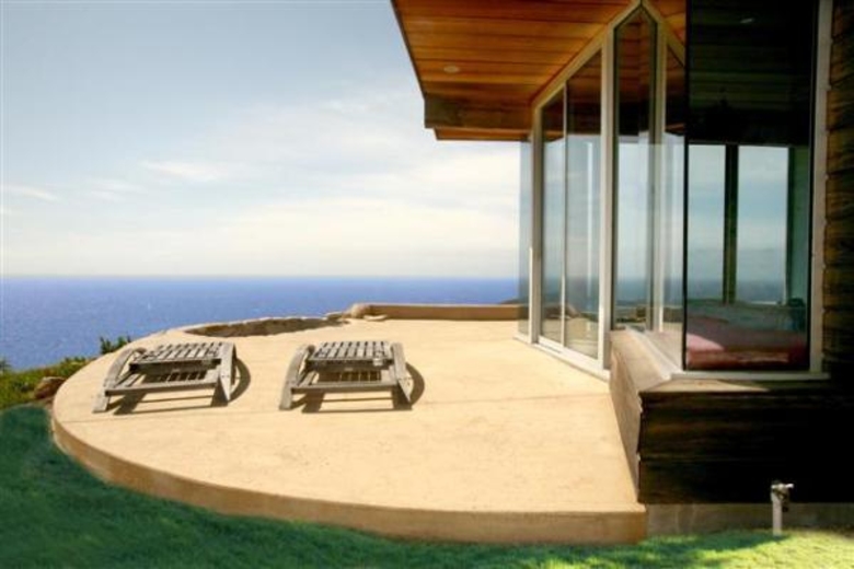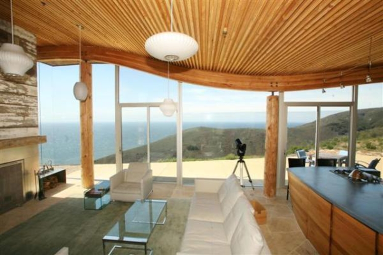 Built into the hillside this 1900 sq ft residence on 40 acres has been featured in Dwell Magazine and the New York Times. When you arrive you will see that the meadow extends over the top of the house to create an insulating roof of native grasses while glass walls allow for unobstructed views of the Pacific.