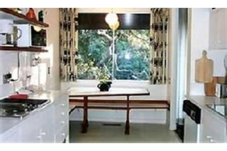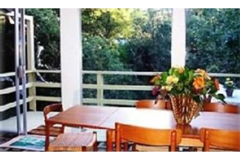 This spacious two level home offers privacy from the top to the bottom floor. There is a fireplace upstairs in the living room that looks out into the trees and a fireplace in one of the bedrooms downstairs. There is a deck on each level. There is a breakfast table located in the kitchen and a dining table both looking out onto the back yard filled with oaks, agapanthus and pines, thus the name Tree House By The Sea.Surrounding Description