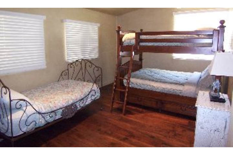 This home has four bedrooms, three baths and a living area with cable TV and a fireplace. The fully equipped kitchen has a dishwasher, microwave and many other conveniences. The first bedroom has a king bed and access leading outside. The second bedroom also has a king bed and sitting area. The third bedroom has a queen bed and the fourth bedroom has a bunk bed (twin on top, double on bottom) and a day bed. You will also find a washer, dryer and wireless internet inside this home.Surrounding Description