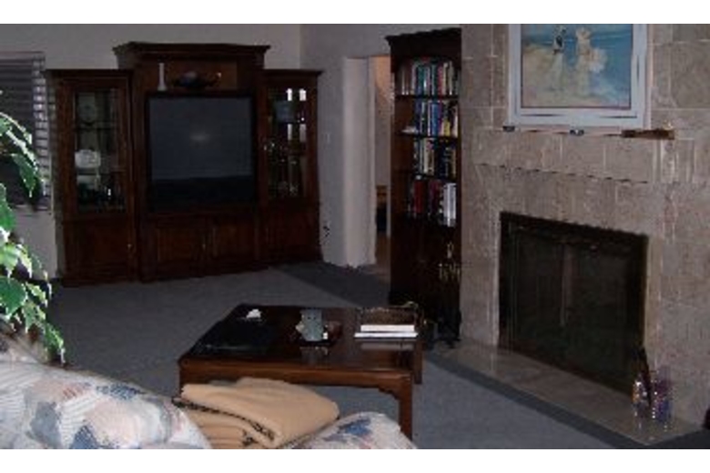 This home has three bedrooms, three baths and can sleep up to ten people comfortably. The first bedroom has a queen bed and the second bedroom also has a queen bed. The third bedroom has a twin bed and a twin with a trundle. There is a double sofa sleeper and a twin sofa sleeper for three extra guests. The living area has cable TV and a fireplace. The dining area has a table and six chairs. The fully equipped kitchen has a dishwasher, ice maker, microwave and tile flooring.Surrounding Description