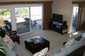 The master bedroom offers a king size bed and is on the second floor. This room has expansive ocean views and a large deck with chaise lounges and seating to enjoy it all. This room is very romantic. For families sharing space, this is a perfect home with the master bedroom plus a bedroom with 2 twin beds upstairs. On the first level there is a bedroom with a queen bed, also with ocean views, plus a huge bedroom/office with another full bed, and a huge desk for a little work time on vacation. Additional amenities include, cable TV, high speed internet, flat panel screen televisions, DVD players and a stereo. The living areas are all modernly furnished with upscale furnishings and fantastic decor. The kitchen is spacious and provides an excellent place to prepare gourmet meals.Surrounding Description