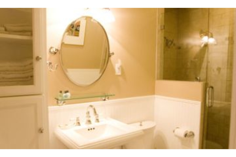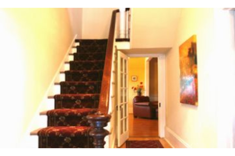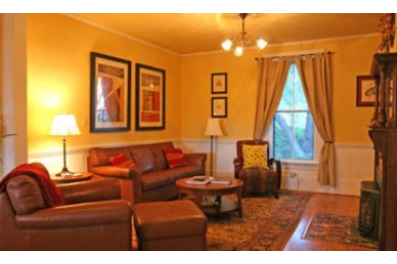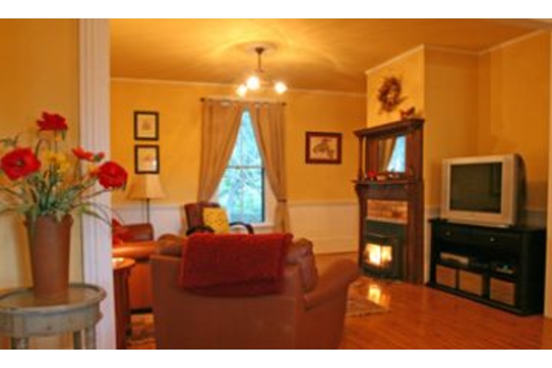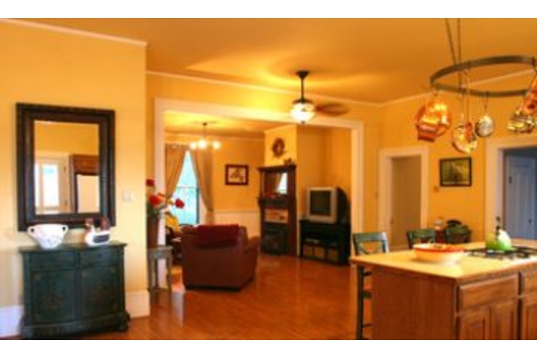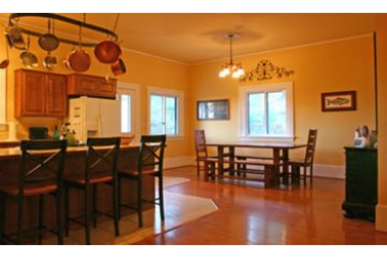 Beautifully remodeled, the kitchen and dining area have high quality appliances, island and family style dining table. These areas adjoin the formal living room which has beautiful sofas and chairs, large flat screen TV, and gas fireplace. To the left of the dining room area is the laundry room with a washer and dryer, and further down the hallway is one of the full bathrooms, with a shower/tub combo. To the right of the kitchen area is one of the bedrooms with a full bed and separately the parlor, with a second fireplace, and again, comfy sofas and chairs for conversation, reading, or quiet time. Passed the parlor is the second bedroom, with queen size bed and pillow top mattress. The second story has two additional bedrooms with queen beds and a second modern, updated and remodeled full bathroom with beautiful walk in tile shower.Surrounding Description