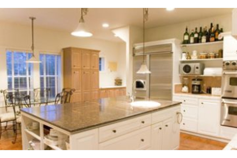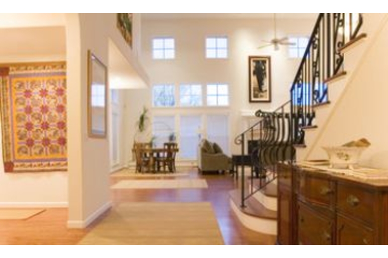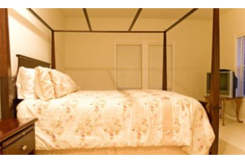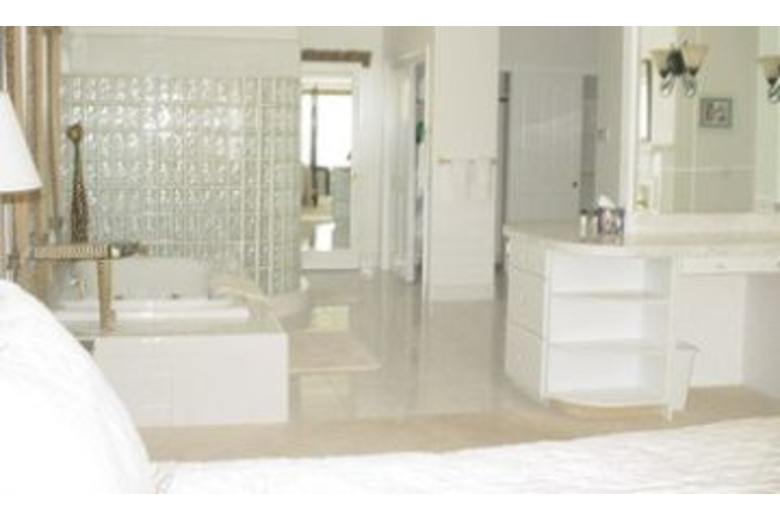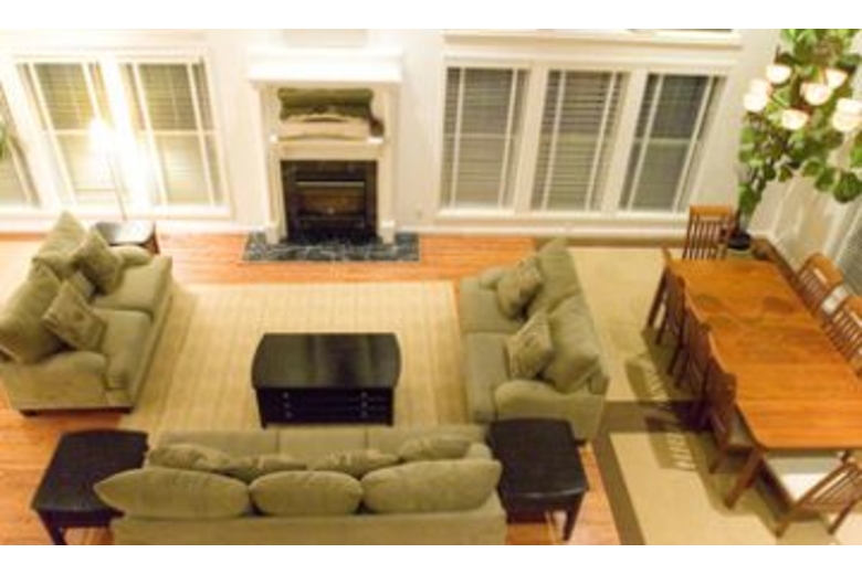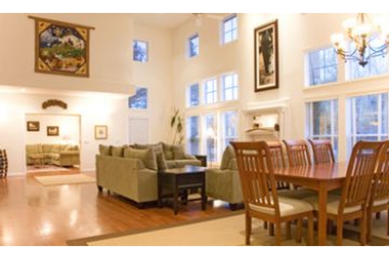 The two story living room offers picture windows, French doors, a huge fireplace and hardwood floors. Three sofas provide a wonderful gathering area as you look out to the meadow, pool and hot tub area. To the left of the living room is the entertainment room furnished with sleeper sofa, and large screen satellite TV with DVD player. Adjoining this room is the gourmet island kitchen and breakfast nook. Two bedrooms are downstairs, one being a master suite with king size bed, and two bedrooms are upstairs, with second master suite and king bed. Each guest bedroom has a queen bed.Surrounding Description