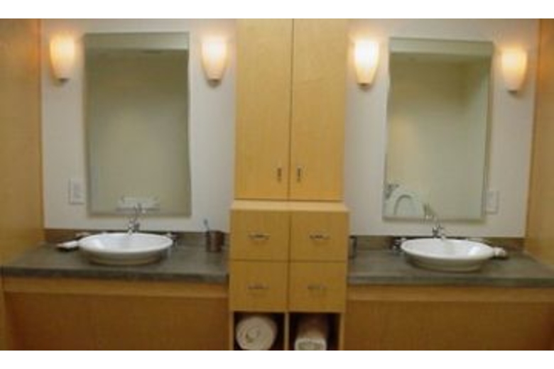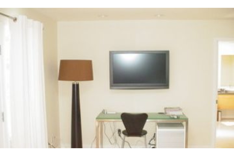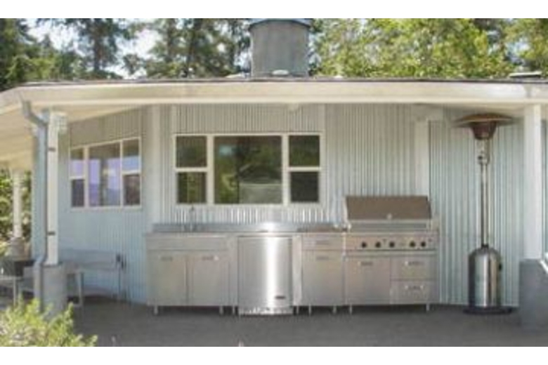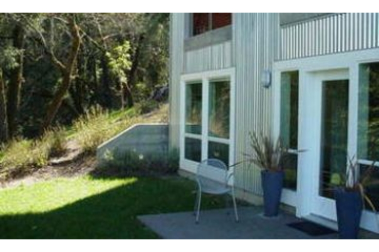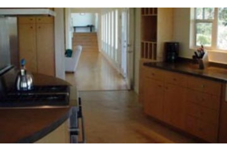 This home offers four bedrooms. The first guest bedroom offers two twin beds and the second offers a queen. Up several steps is the master suite, featuring his and hers sinks, bathtub and large shower. The master has a deep queen bed, writing desk, large flat screen TV, and balcony for views or yard access. The living room features a number of built-in cabinets with TV, stereo and DVD systems, enjoyed in comfortable sofas and chairs. The kitchen features polished concrete floors and countertops that have been installed for ease of use and cleaning convenience. A wonderful gas cook top and hood are part of the kitchen island, and over sized refrigerator is great for groceries and cool drinks. An extra long dining table accommodates all eight guests, and the family room opens up just off the dining area for casual conversation or evening coffee or cocktails. The separate guest house is a mini-retreat, with living room, queen bed, full bath and kitchenette. The play area features a bocce ball court, ping pong table, and play room -- great for crafts or coloring for the kids.Surrounding Description