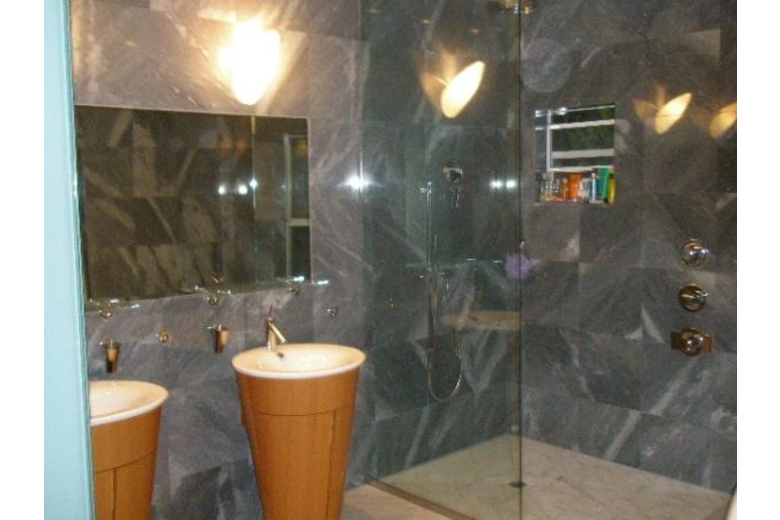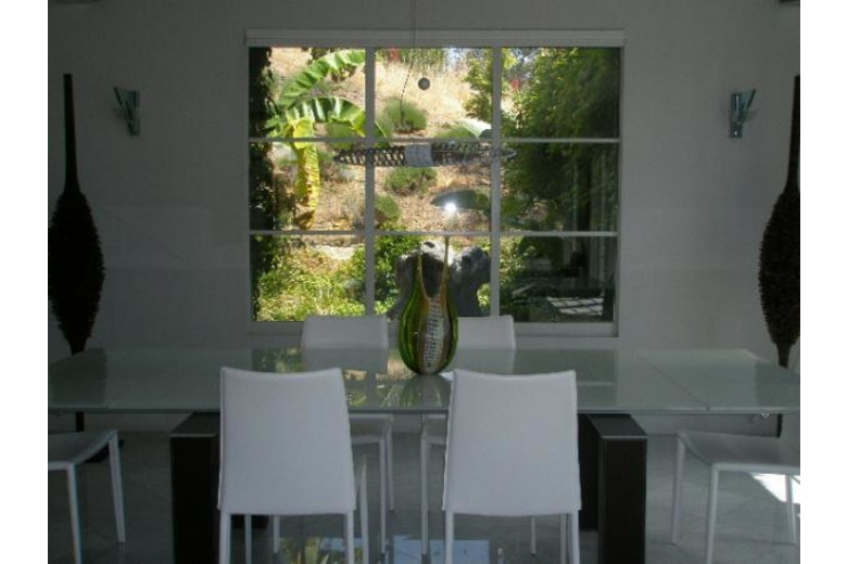 The property comprises 4500 square feet of recently improved space, offering 4 bedrooms and 4 1/2 baths. The exterior is a Mediterranean styled building with ivy growing up the facade and wrap around terrace with unobstructed views of the valley. The interior is decidedly contemporary with heated marble floors and wood flooring in the sleeping area's. The finishes are all top of the line featuring Phillipe Stark designed bath hardware , custom doors and a custom stairwell. The kitchen is a large gourmet kitchen with all the modern appliances, including 2 miele dishwashers, a refrigerated walk in wine room, a warming draw, and an oversized island. There are two living rooms including the raised private Living room featuring a 70" HDTV with surround sound Blue Ray player and Dish network. The lower Living room, Dining area and Kitchen are equipped with a central Bang and Olufsen stereo system. All bedrooms are eqipped with either 37" or 50" HDTV with DVD and Dish network. The Master bath has a dramatic walk in rain shower, and a Duravit Stark whirlpool tub. The closet area is a dramatic walk in area with beautiful Mahogany mill work.