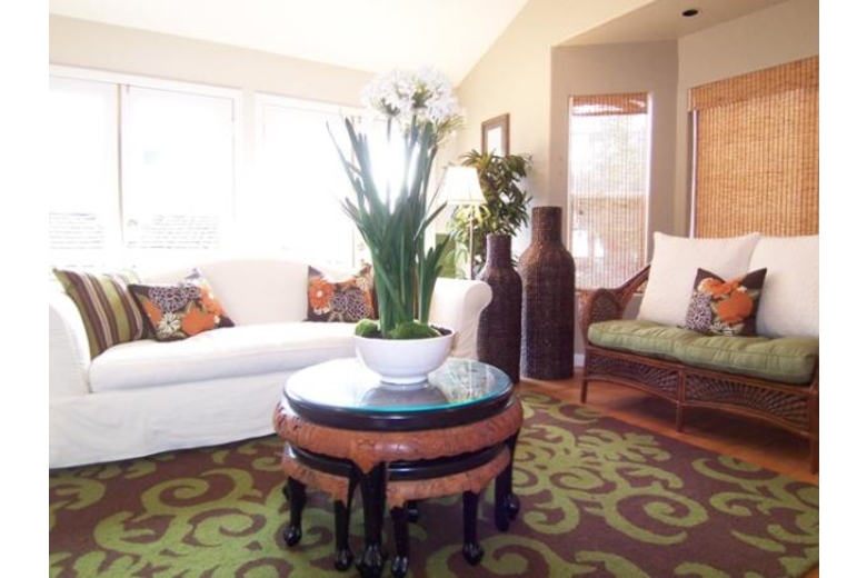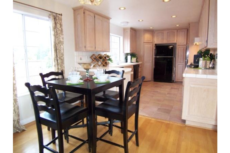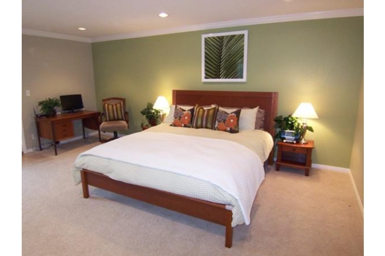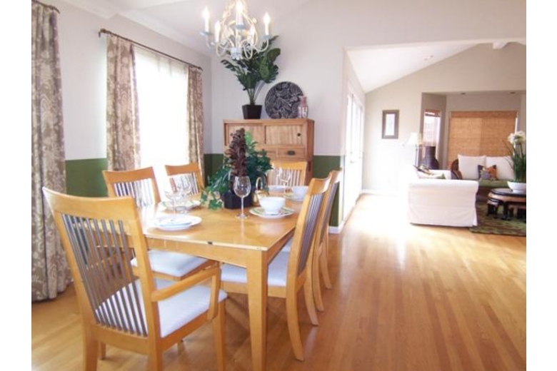 At the top of the stairs there is a formal dining area with table for 6. Wood floors flow into the living room and kitchen. The Ocean View living room includes high ceilings, lots of light, 42" flat screen tv with cable access and separate speakers. There is a couch and love seat that face the gas fireplace and TV. Off the living room is a balcony with an ocean view. There is a kitchen nook table and chairs for 4 at the entrance to the tiled kitchen. Gas Stove, built in microwave, dishwasher and trash compactor. Additionaly there is a rice cooker, toaster and lots of spices. Past the dining area is a half bath and then the master bedroom with king bed, desk and chair, walk-in closet, 32" flat screen tv. The attached bathroom has a skylight and large windows above the jacuzzi tub. There are 2 sinks and a separate glass shower. Parking for 2 cars in the driveway and possibly a third on the street in front of the driveway. There are beds for 6 with possible 7-8 persons on airbed.