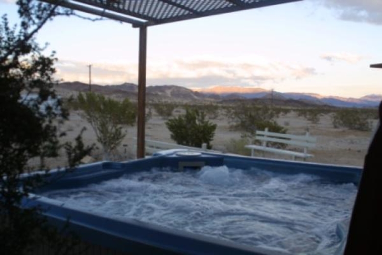 This is a unique home on 10 acres of the Mojave Desert next to the mountains with a private gate where you can hike, bike or take photos. The front ranch style patio gives you an open view to the Joshua Tree National Mountains where you can bask in the morning sun and enjoy your coffee and breakfast. The back patio has an extended yard view to the mountains with a fire place, BBQ area and seating benches. To the west you can admire the San Bernardino mountains.