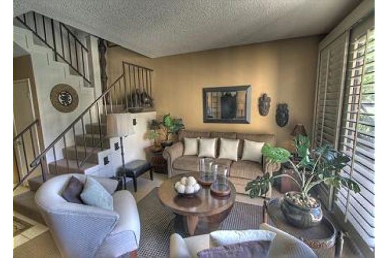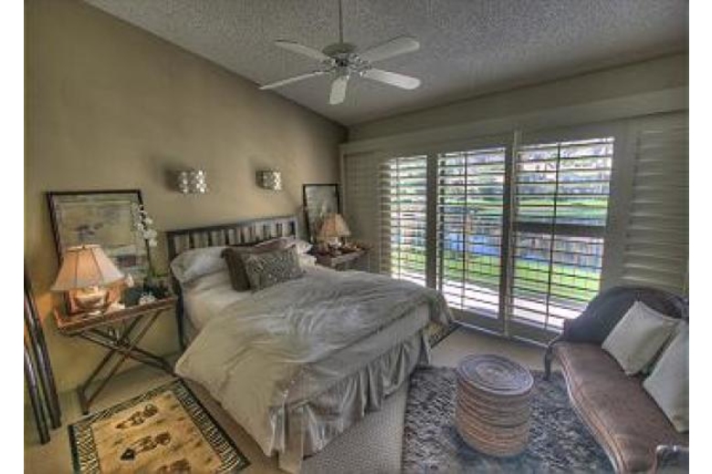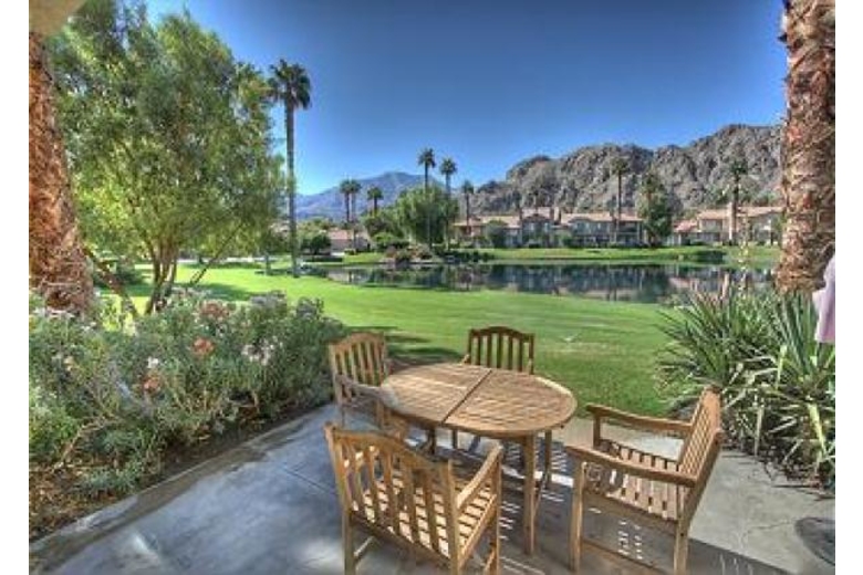 This completely beautiful floor plan offers 1515 Sq. Ft. in a two level design overlooking a lake at the Arnold Palmer Private Residence at the famed PGA West. Over looking the lake to the west you'll enjoy the breathtaking views of the Santa Rosa Mountains. This condominium features designer custom furnishings throughout including a wet bar, dining for six, TV/VCR/DVD, powder room and a comfortable living area complete this beautiful condo.The master bed room upstairs features a king bed complete with extra seating, large master bath & large closets. The second bedroom offers a private bath with a king bed. This condominium is perfect for the weekend getaway, weekly escape and or retreat for the month, you are sure to enjoy this condominium on the lake with the mountains for a back drop. There is a community pool and spa for your pleasure just steps away.