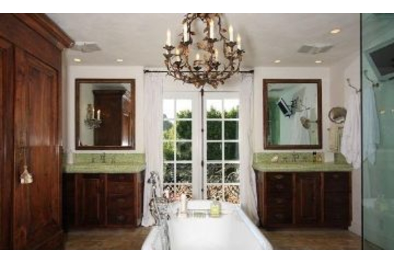 European antiques are lovingly integrated into every detail of this completely remodeled 4 bedroom, 3 bathroom masterpiece in Los Angeles. A vine and rose covered entrance leads to wide plank walnut floors, reclaimed French pavers, nickel rain showers, English claw-foot tub, ornate wrought iron balconies, antique doors, and hand-carved antique mantels that have been meticulously built into this showcase home.
