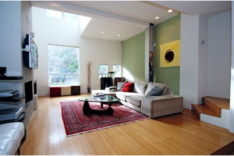 Stunning private architectural off Beverly Glen Blvd. Two-story living room perfect for entertaining. Living room/dining room combination highlighted by bamboo wood floors, recessed lighting and tree top views. Large private terrace with gas burning fireplace and built in speakers.