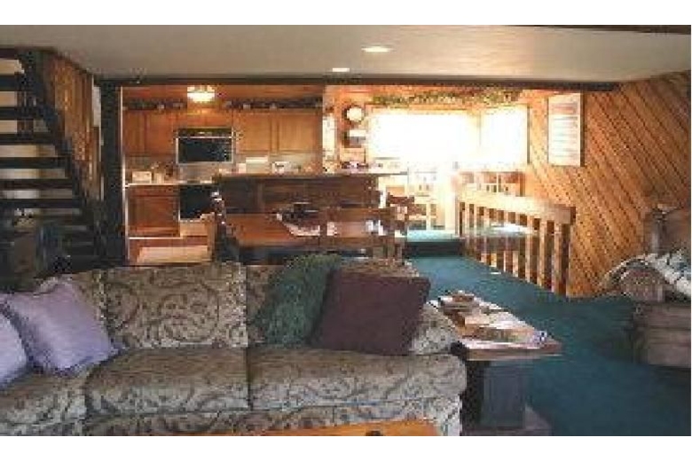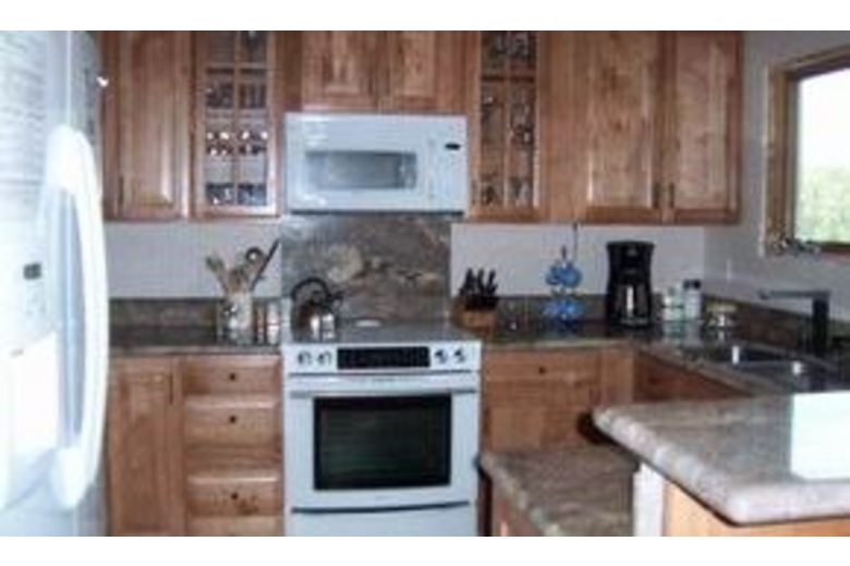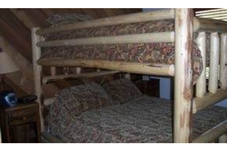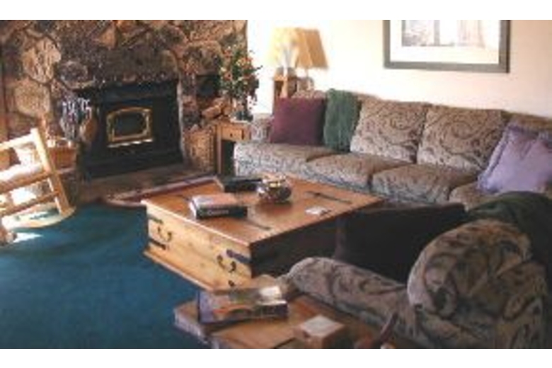 Downstairs in the master bedroom there is a queen size bed, TV/DVD/VCR, lots of mirrored closets and a large private bathroom. The second bedroom has all new oak furnishings, new king size bed, tons of closet space, TV with DVD/VCR and an attached bath. The third bedroom is also downstairs and has a huge log queen size bunk bed and cute mountain decor. Upstairs the loft sleeps four comfortably. The living room is spacious with open beam ceilings, a large rock fire place, beautiful new furnishings, over sized sectional couch, TV/VCR/DVD and a deck with some of the best views in Mammoth.Surrounding Description