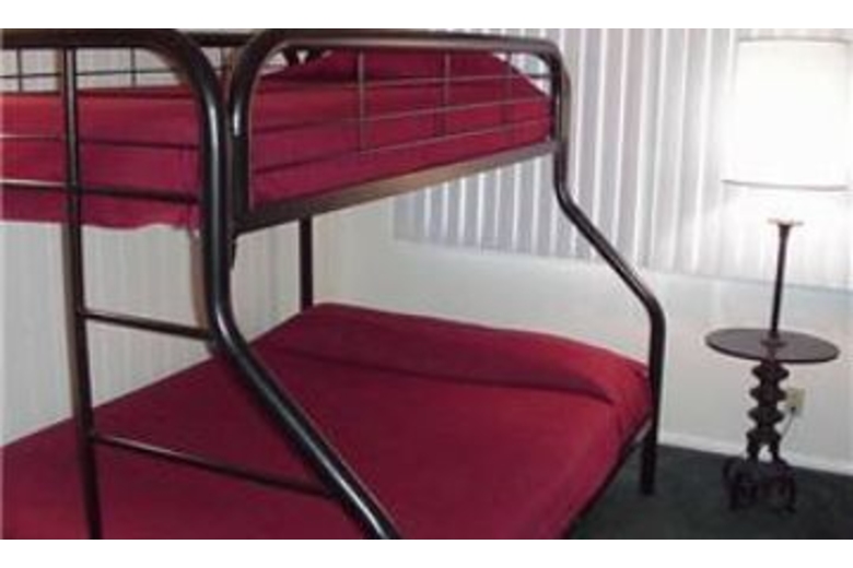 This beautiful resort condo offers four bedrooms and three baths, accommodating up to 12 guests. The master bedroom includes a comfortable king size bed and bright lighting. The second bedroom has two twin beds, queen size sleeper sofa as well as a television, VCR and shared full bathroom. In the third bedroom you will find two twin beds, one bunk bed (double bottom/twin top) and another shared bathroom. The fourth bedroom features a queen size bed and shared full bath. Settle into the living room, light the fire, and enjoy the extensive movie library or just listen to the stereo. Meals may be served from a cozy kitchen to the breakfast bar or dining area. Winter visitors will enjoy the convenience of a townhome right on the Mammoth Red Line Shuttle route. A spa, sauna, and laundry facilities round out this mountainside, restful location. Additional comforts include 2 televisions,warm wood burning fireplace, 2 parking spaces, BBQ, CD player, laundry, premium cable, and a swimming pool.Surrounding Description