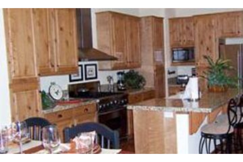 This nicely furnished townhome has custom interior design and offers amazing views. It features three bedrooms with a private bathrooms and TV/DVD in each room. The master suite has a king size bed with a whirlpool tub, the second bedroom has a queen bed, and the third has two full size beds, accommodating up to eight.The kitchen has beautiful hickory cabinets and is fully equipped. The great room has a lovely wood burning fireplace with wood included, and a 60" TV with home theater system. There is also an XBOX system with games. Other great amenities include: Two car garage, wine cabinet, washer/dryer, gas barbecue, on-site jacuzzi, and free high speed internet access.Surrounding Description