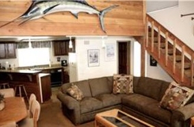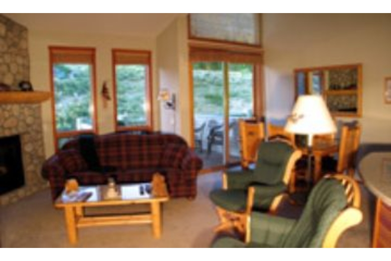 The master bedroom has a nice king size bed, a TV, and a gas fireplace. The kitchen is fully equipped and there is a full sized washer and dryer. The dining area seats six. The living area has a fireplace, nice furniture, and access to the large balcony. With twelve hundred square feet, this upscale unit sleeps two guests.Surrounding Description