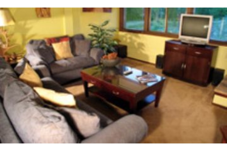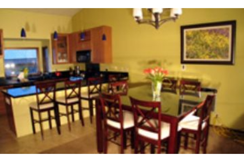 This townhome is two levels with the bedroom downstairs. The bedroom features a queen bed with excellent bedding and very nice furniture. Upstairs, the living area has nice sofas, great windows, and a TV, DVD player and stereo. The kitchen is fully equipped and includes a large breakfast bar. The dining table is very modern and seats six. This unit features a fireplace and a full size washer and dryer. A queen airbed for the living area is available upon request.Surrounding Description