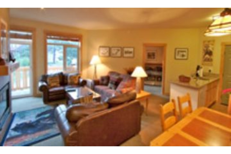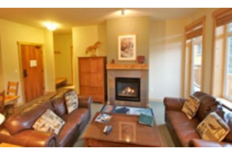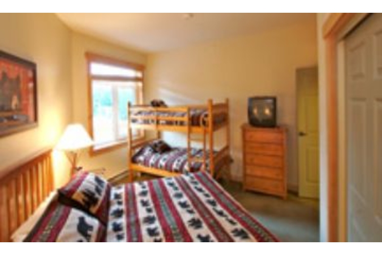 This attractive two bathroom and two bedroom townhome has high ceilings, and great views throughout. The spacious living room has leather upholstered furniture, LCD television, and a cozy fireplace. The dining area has a wood table that will seat six guests. The kitchen is fully equipped and has all your basic cooking needs. Have a peaceful nights rest on the king bed, queen bed, and twin bunk beds offered. The living area also has a double sofa bed. Enjoy close proximity to skiing and the outdoor hot tub and pool. Guests also have access to wireless Internet, a common laundry room, and ski lockers.Surrounding Description