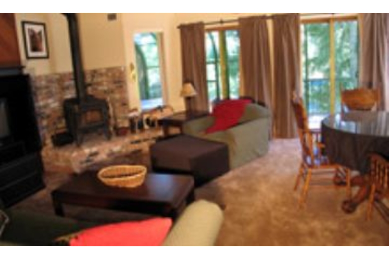 The first master bedroom offers a queen size bed with elegant bedding and nice furniture. The second master bedroom also features a queen bed. The living area is large and has a wood burning stove, a great place to visit with friends and family in the evenings. The kitchen is fully equipped and decorated with country decor. This unit has wireless internet access and access to the central laundry area.Surrounding Description