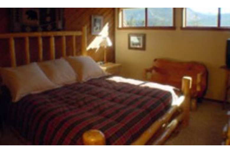 The living area has a unique and fun ceiling and great decor on the walls. There is a double futon and a nice TV. The dining table is great and seats six. The kitchen is fully equipped. The master bedroom offers a king size log bed with excellent bedding and nice windows. The loft has two twin beds and is a fun place to hang out for the kids.Surrounding Description