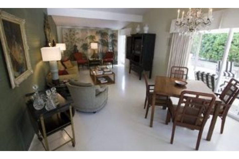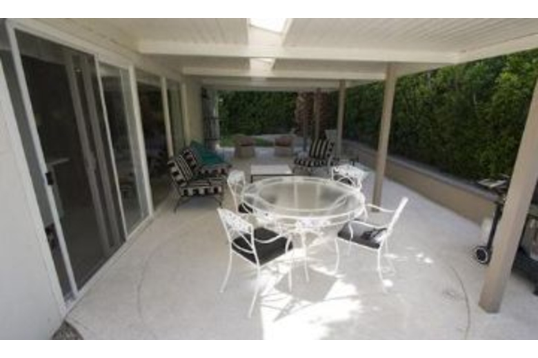 Approximately 1600 square feet, this upscale home offers a wonderful indoor/outdoor flow, a beautiful "Hollywood Regency Style" by a well known Los Angeles decorator. Elegance and class are great words to describe the decor and ambiance found here. The living room has both Asian and mid-century influences and features a private dining area with a large television as well as very comfortable sofas for relaxing and enjoying good conversation with family and friends. The large living room opens up to the modern fully equipped kitchen which is perfect for entertaining your guests. The bedrooms are large and have great comfortable beds. It is the perfect getaway!Surrounding Description