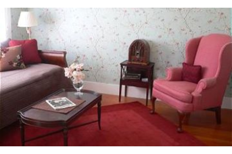 The Mary Agnes Poe House features a sunny and inviting interior, complete with period furnishings, interesting original architectural features, unique wall coverings, and a fully equipped kitchen with dishwasher. The three cozy bedrooms have comfortable queen size beds, and an inviting sunroom has a fold out couch that sleeps two. There are two modern full bathrooms, one featuring a spa shower. The formal dining room seats eight people comfortably, and opens onto a covered deck where you can enjoy a glass of wine or morning cup of tea. With plenty of outside seating, you can rest on the sun-drenched front porch, unwind in the peaceful flower gardens with your favorite book, or entertain yourself and your guests with a barbeque on the lawn or intimate conversation under the sheltered gazebo. Other amenities include, local phone service, wireless internet, satellite/cable TV, DVD player, gas barbecue, cards and games. All linens are supplied, but should you need them a washer and dryer, iron and ironing board are also provided.Surrounding Description