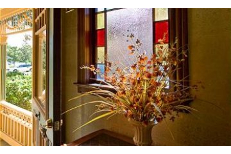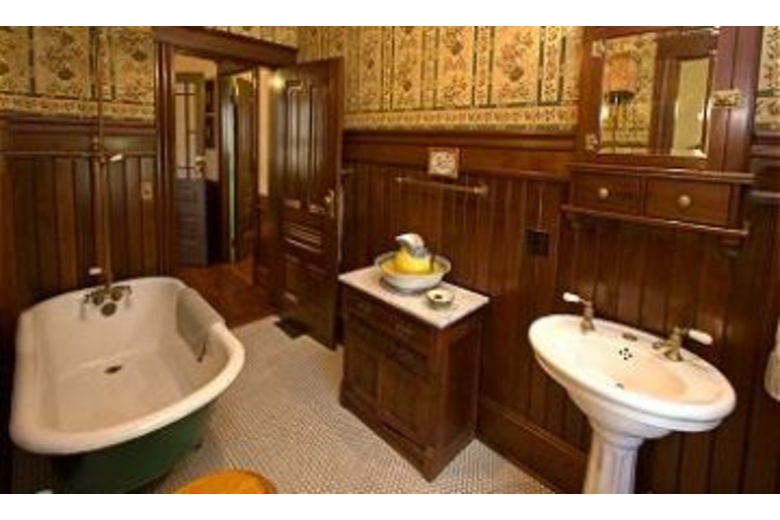 Go back in time in this spectacular home! Gaze at the stained glass windows. The lovely living room is comfortably furnished and has a wood burning fireplace. Each of the bedrooms is beautifully decorated. One of the bathrooms has gorgeous woodwork and a claw foot bathtub. The kitchen has been updated but still has some of the original features of the home. Come and stay in comfort and history at this fabulous home!Surrounding Description