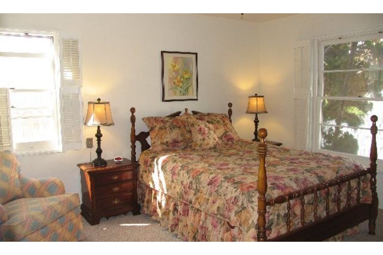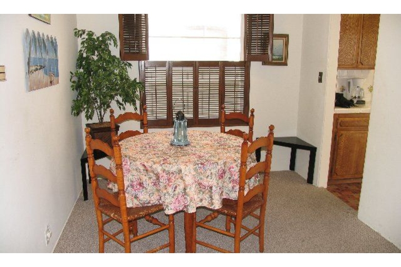 This beach cottage will bring charm and relaxation to your vacation. Located within easy walking distance to the bay and its beautiful views.This lovely home has two bedrooms and one bathroom providing sleeping accommodations for up to six people. The master bedroom has a queen size bed and the second bedroom has a full size bed. A full size sofa sleeper turns the living room into a third bedroom at night.You will be able to find plenty to do with access to the Free Fitness Center and with the Bay nearby. Or you can relax at home wtih Television, cable and DVD/VCR. Relax in front of the fireplace with a great book provided in the ample book library.You will enjoy cooking outdoors on the Gas BBQ and will find plenty of space to do it on either the front or the back patio area.Surrounding Description